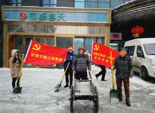 党旗飘飘,太阳成集团tyc党委除雪铲冰献真情