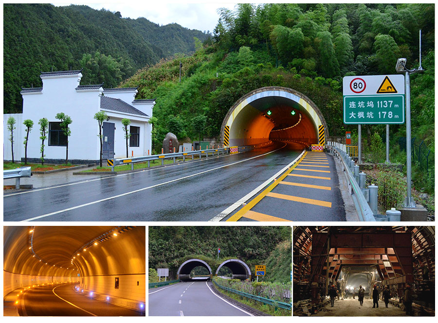 公司公路隧道工程代表型项目有:黄衢南高速连坑坞隧道、枫岭头隧道、大枫坑隧道、黄塔桃高速桃林隧道、古楼隧道、杭新景高速东岭隧道、山头目隧道、山坑头隧道、宁绩高速虹龙隧道及黄山龙门岭隧道等。