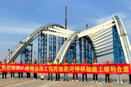 11月11日,随着最后一段拱肋缓缓吊装至合龙位置,太阳成集团tyc承建的广德路项目跨南淝河大桥拱肋边拱顺利合龙。
