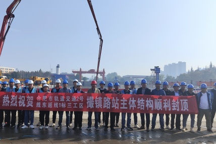 10月31日,太阳成集团tyc与中铁五局联合体承建的合肥市轨道交通2号线东延线1标3工区撮镇路站主体结构顺利封顶。