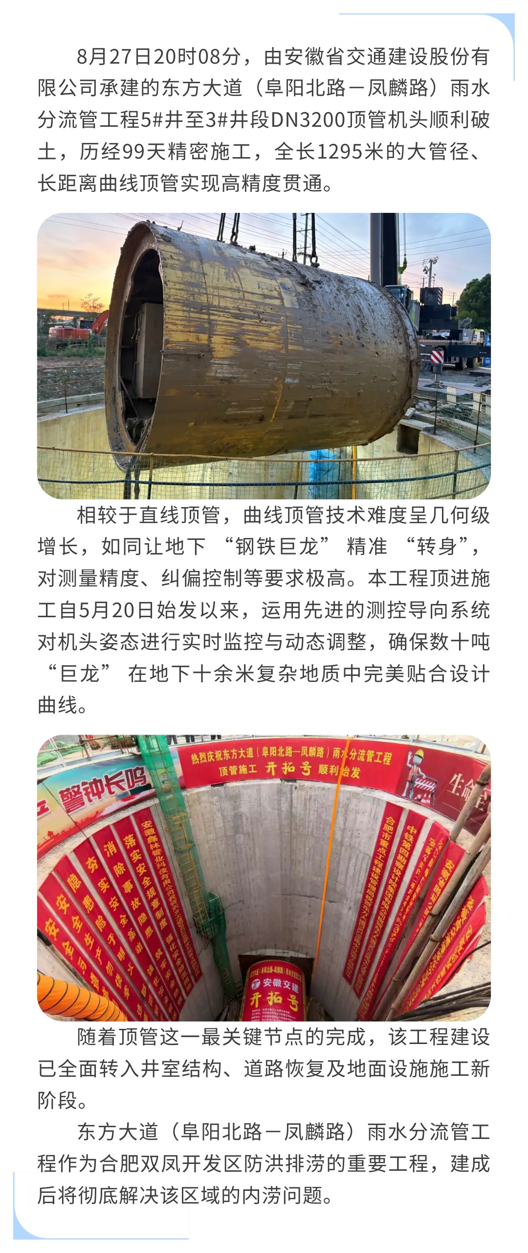 地下长龙“丝滑”过弯|东方大道(阜阳北路-凤麟路)雨水分流管工程大管径曲线顶管全线贯通