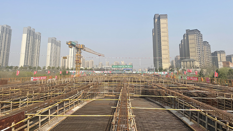 面对桥梁建设任务重、工期紧、施工工艺难度大等因素,项目部自去年10月底桥梁段施工以来,采取“节点工作法”,挂图作战,制定详细工作安排,每日组织开展“碰头会”,现场解决问题。过程中始终把安全质量作为重中之重,规范行为、强化管理、精益求精。项目部领导班子以身作则,带头冲锋,迎难而上,攻坚克难,在保障安全质量的前提下提速增效,提前完成了整体浇筑任务。