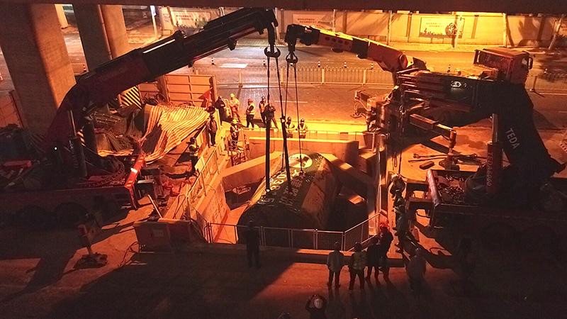 合肥轨道交通建设首次应用:低净空折臂吊车接力吊装技术