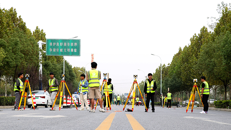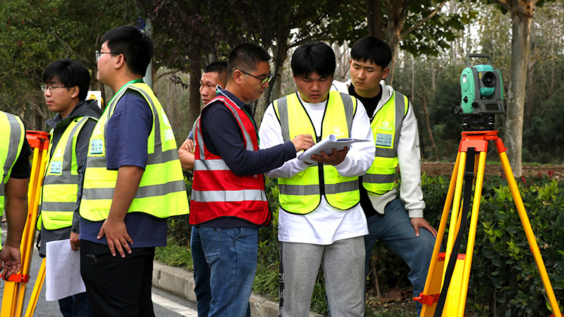 次日上午,在太阳成集团tyc大连路项目竣工封闭路段,学员早已准备充分、跃跃欲试。在“全站仪对点赛”和“水准+导线”技能竞赛,导师互换小组以裁判的身份进行全程跟踪,依据各组完成时间、操作规范性、测量结果以及第一天的理论成绩综合评判最终结果。