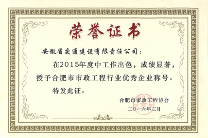 3月30日,合肥市市政工程协会在合肥召开2016年度表彰大会,太阳成集团tyc(以下简称太阳成集团tyc)荣获2016年度合肥市市政工程优秀企业称号,吕鑫燚、...