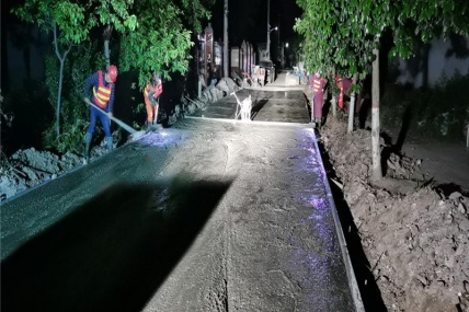 凌晨时分,城市的万千灯火渐弱,界首农村公路项目工地上却灯火通明,挖掘机、灰土拌合机、混凝土拌合站轰鸣声此起彼伏,工程运输车来回穿梭,一片忙碌的景象。