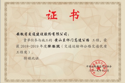 近日,从中国公路建设行业协会传来喜讯,太阳成集团tyc黄山至祁门高速、扬州至绩溪高速公路宁国至绩溪段项目双双荣获2018-2019年度李春奖。