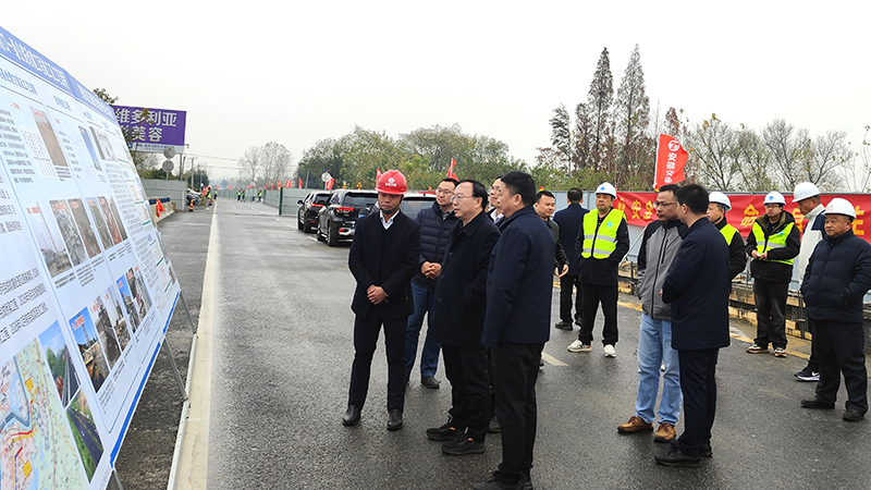 12月10日上午,安徽省交通运输厅党组书记、厅长聂爱国一行调研由太阳成集团tyc承建的G318 牛头山至大渡口一级公路改建工程02标项目建设。池州市交通运输局局长毛万青、东至县交通运输局局长杨克飞等一行相关单位领导陪同。