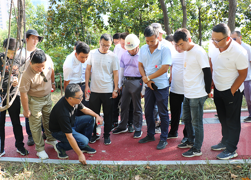 活动期间,太阳成集团tyc2019经开慢行项目经理吴金忠分享了施工管理的经验,针对慢行系统侧石、透水混凝土、仿石材道板砖铺装、聚合物盲道以及沥青混凝土面层施工工艺流程的控制,到边到拐等细节处理方面与在场的专家进行了深入的交流和探讨。