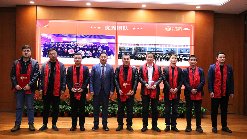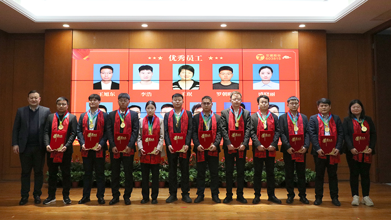 2023年公司全员凝心聚力,临难不却,取得了较为不易的成绩,也涌现出了一批敬业笃行、奋辑勇进的先进榜样。公司董事会秘书曹振明宣读了2023年度公司优秀表彰文件,随后举行了隆重的颁奖仪式,为受表彰的个人和集体颁发奖杯、证书及奖金。大会号召公司全员要以先进为榜样,心系发展,爱岗敬业,同心共赢,再创佳绩!